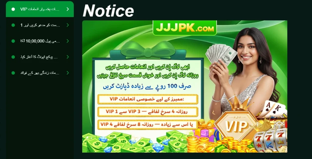 JJJ PK Game is currently a very new and trendy online gaming platform in Pakistan, which specifically combines entertainment and real cash earning opportunities together. It is an all-in-one app where users can play all kinds of casino games and also get the chance to earn money easily on their Android mobile devices.