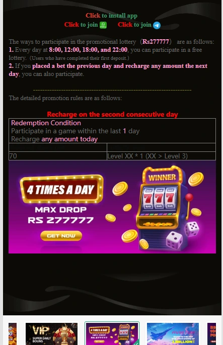 Play the game daily and win exciting bonus rewards including money and other perks. Seasonal rewards will be awarded to the players with excellent deposit record.