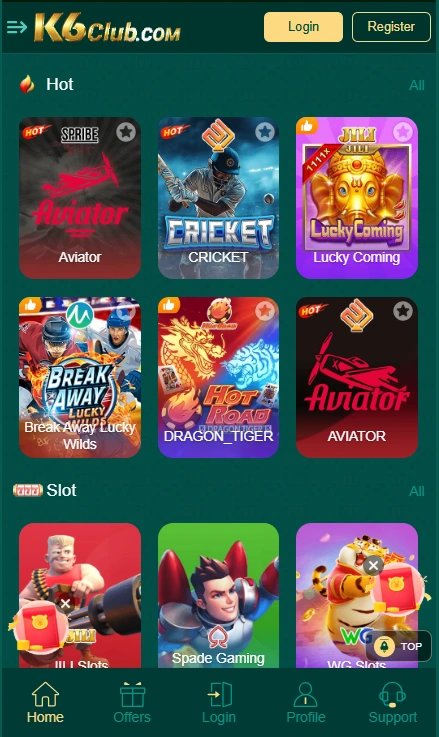 K6 Club Game is an innovative online gaming platform where players enjoy a wide range of games, including card games, slot games, Teen Patti, and poker. The application offers a large collection of casino-style games, allowing users to participate and earn various rewards. In addition, the app enables players to join tournaments and special events to generate real earnings. In these games, players use both luck and skill to win real bonuses.