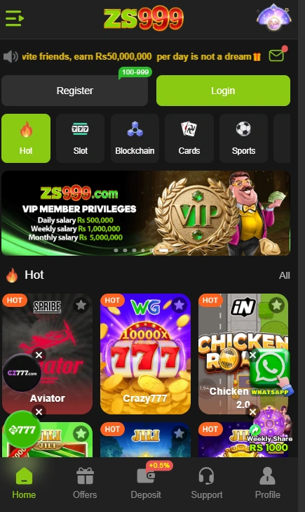 One of the best feature of the Game is its instant withdrawal system, which enables players to withdraw their winnings quickly and easily. Additionally, this application stands out as one of the most secure and smooth gaming apps available so far. zs 999 Game provides a simple user interface and smooth gameplay, allowing both beginners and professional players to participate without any difficulty.